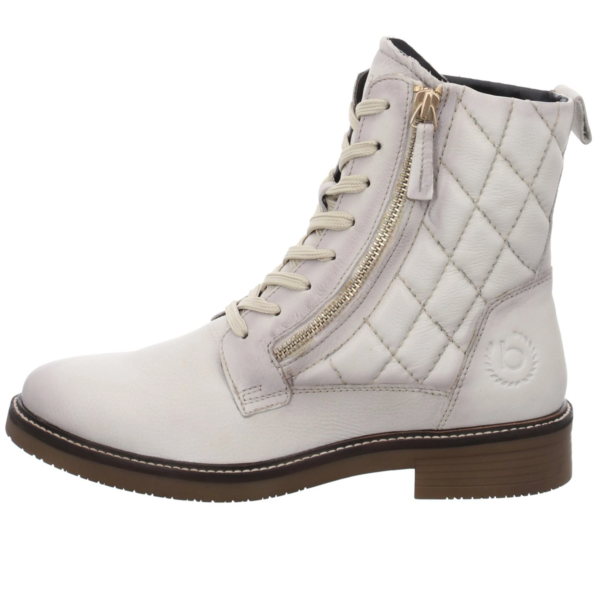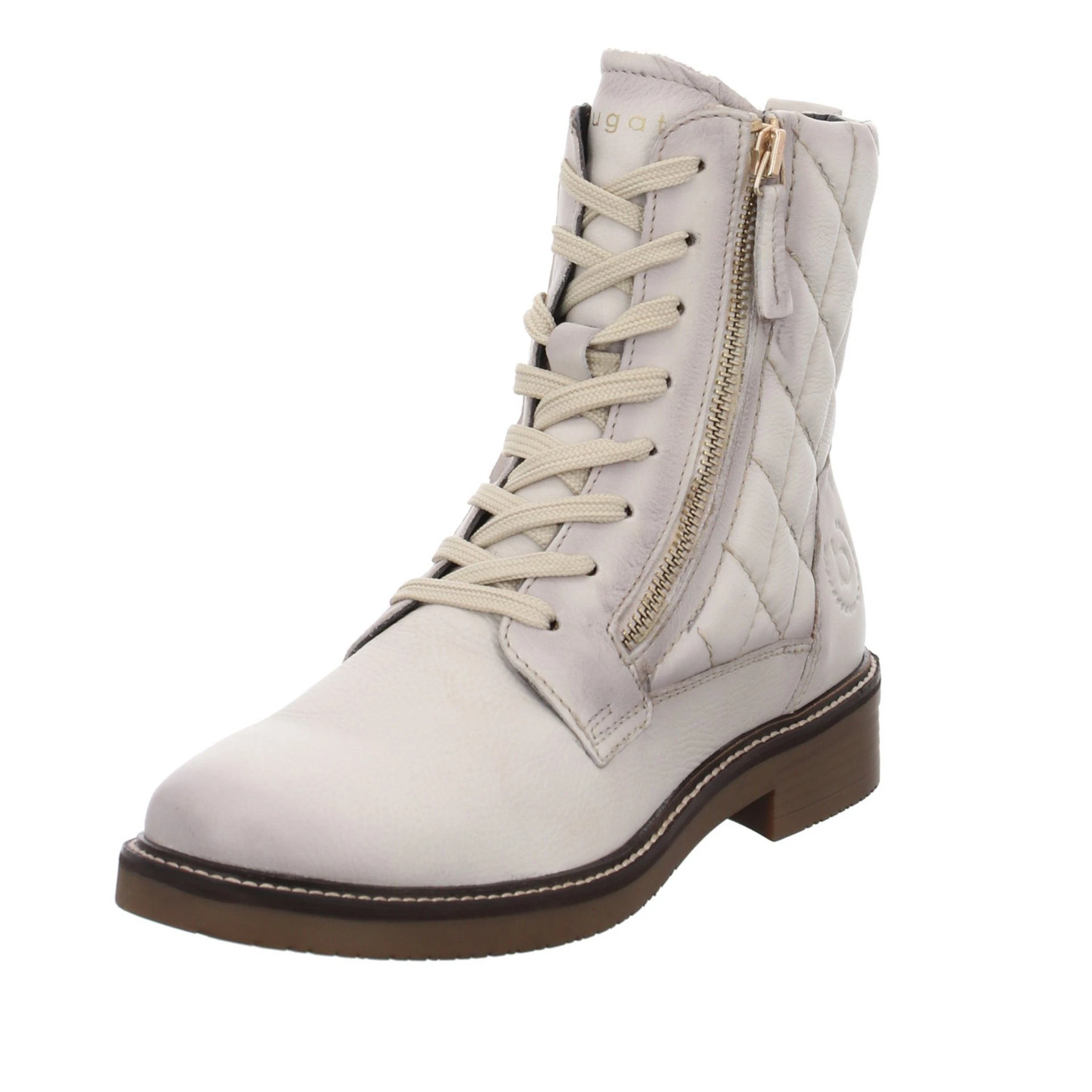 Diese zeitlosen Boots von bugatti sind die perfekten Begleiter, egal ob zur Jeans oder lässig zum Kleid. Das schwarze Glattleder ist teilweise gesteppt und mit einem funktionalen, goldfarbenen Reißverschluss kombiniert worden. Durch die Kombination von Schnürung und Reißverschluss sind die Schuhe schnell angezogen und sitzen optimal am Fuß.