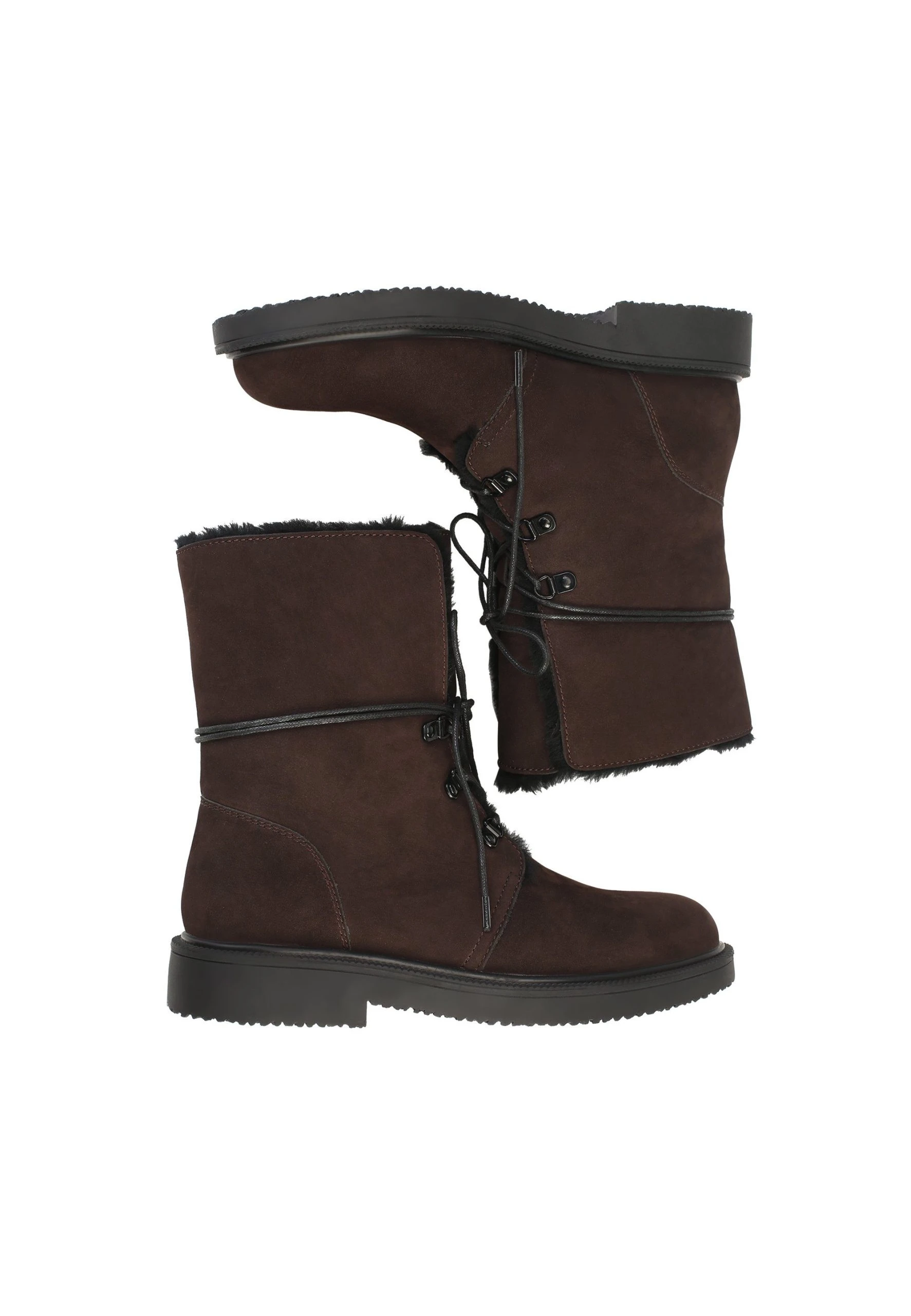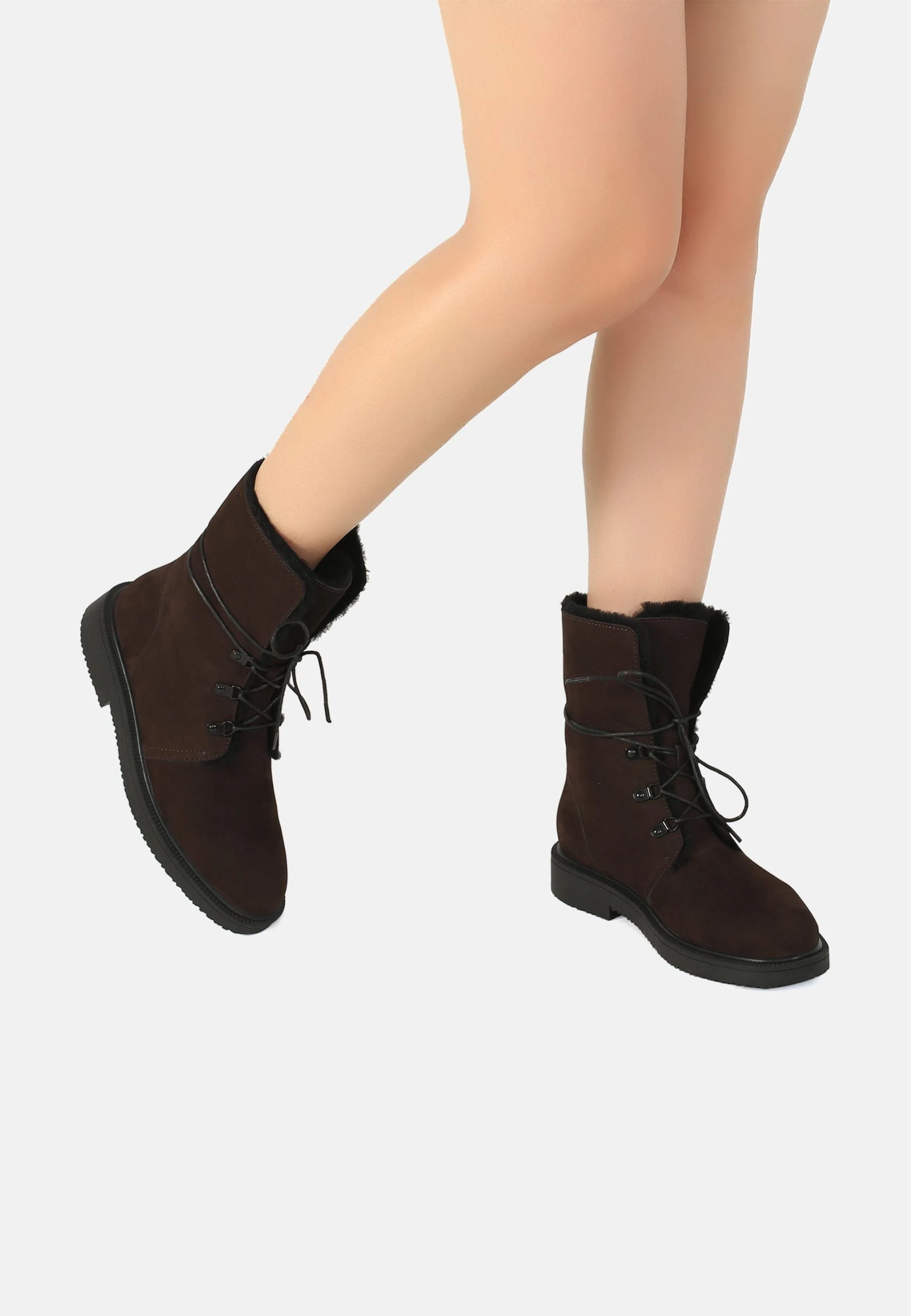 Diese Winterstiefeletten der Marke ekonika überzeugen durch ihren hohen Tragekomfort und ihr schlichtes Design. Besonders die Kontrastschnürung und die Metalllaschen fallen ins Auge. Das Modell ist aus samtigem, echtem Nubukleder gefertigt. Stilisten empfehlen, ein solches Paar mit blickdichten Strumpfhosen und einem schlichten Kleid oder mit breiten verkürzten Jeans zu kombinieren.
