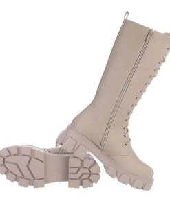 Ital-Design »Damen Freizeit« Stiefel Blockabsatz Plateaustiefel In Beige