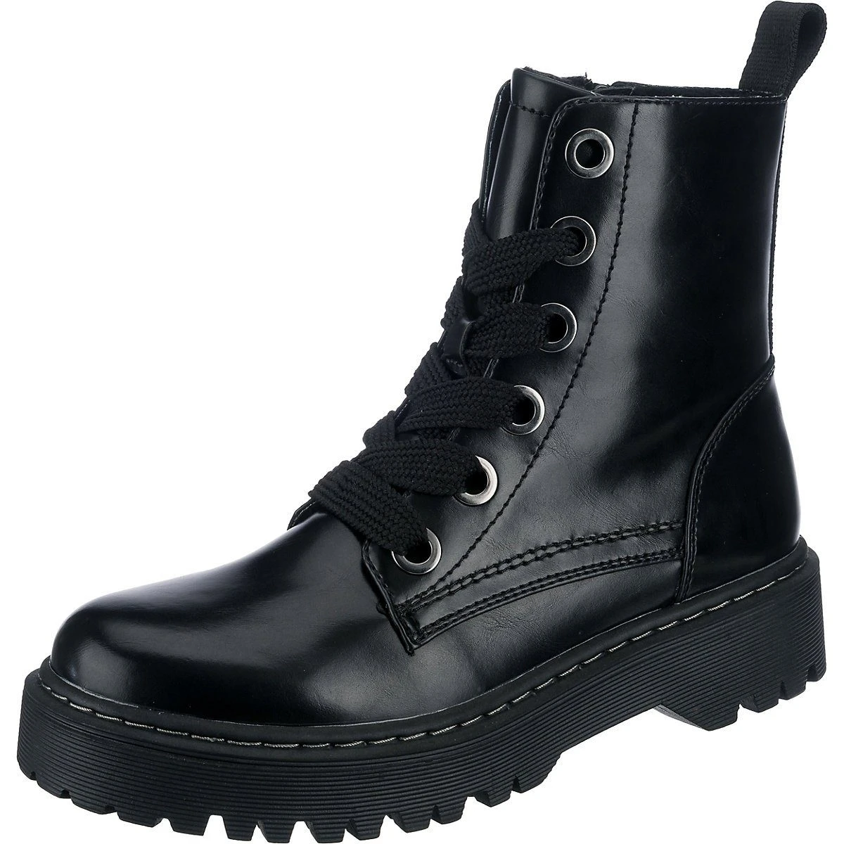 – verstärkte Ferse – mit angenehm anpassungsfähigem Futter aus textilem Material – pflegeleichte, synthetische Oberfläche Ergänzen unterschiedlichste Looks: Diese stilecht gestalteten Schnürstiefeletten von Jane Klain. Ein modischer Retro-Akzent entsteht durch die Plateausohle. Die Oberfläche dieses Paares besteht aus Synthetik und punktet mit der ansprechenden Gestaltung. Der Schuh ist mit einem Reißverschluss ausgestattet. Verschluss: Reißverschluss Absatzart: Plateau Absatzhöhe: 3 cm Schuhweite: F Obermaterial: Sonstiges Material (Synthetik) Futter: Textil (Textil) Decksohle: Sonstiges Material (Synthetik) Laufsohle: Sonstiges Material (TPR-Sohle)