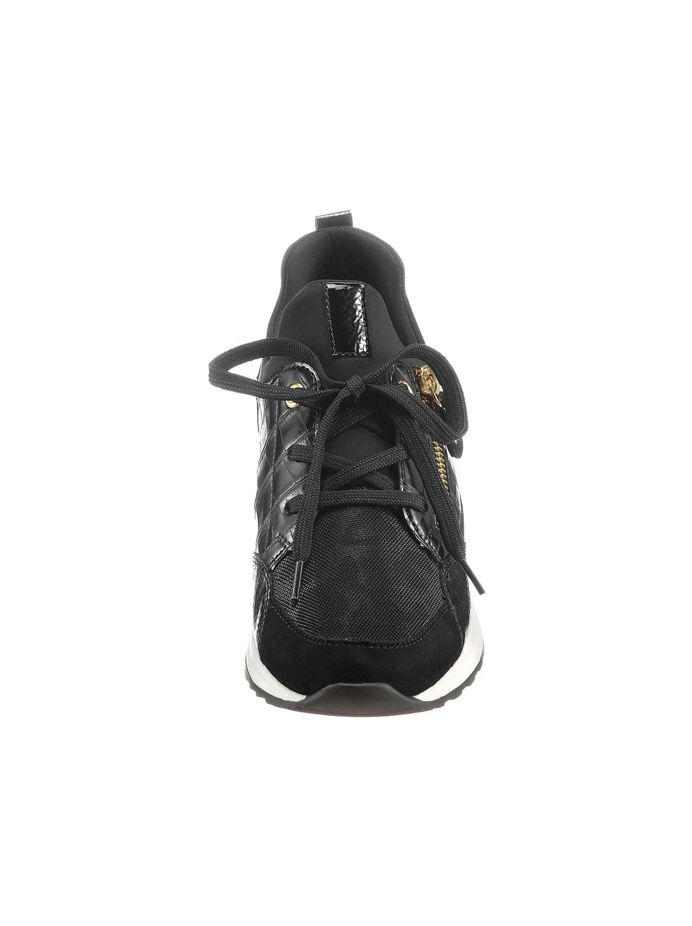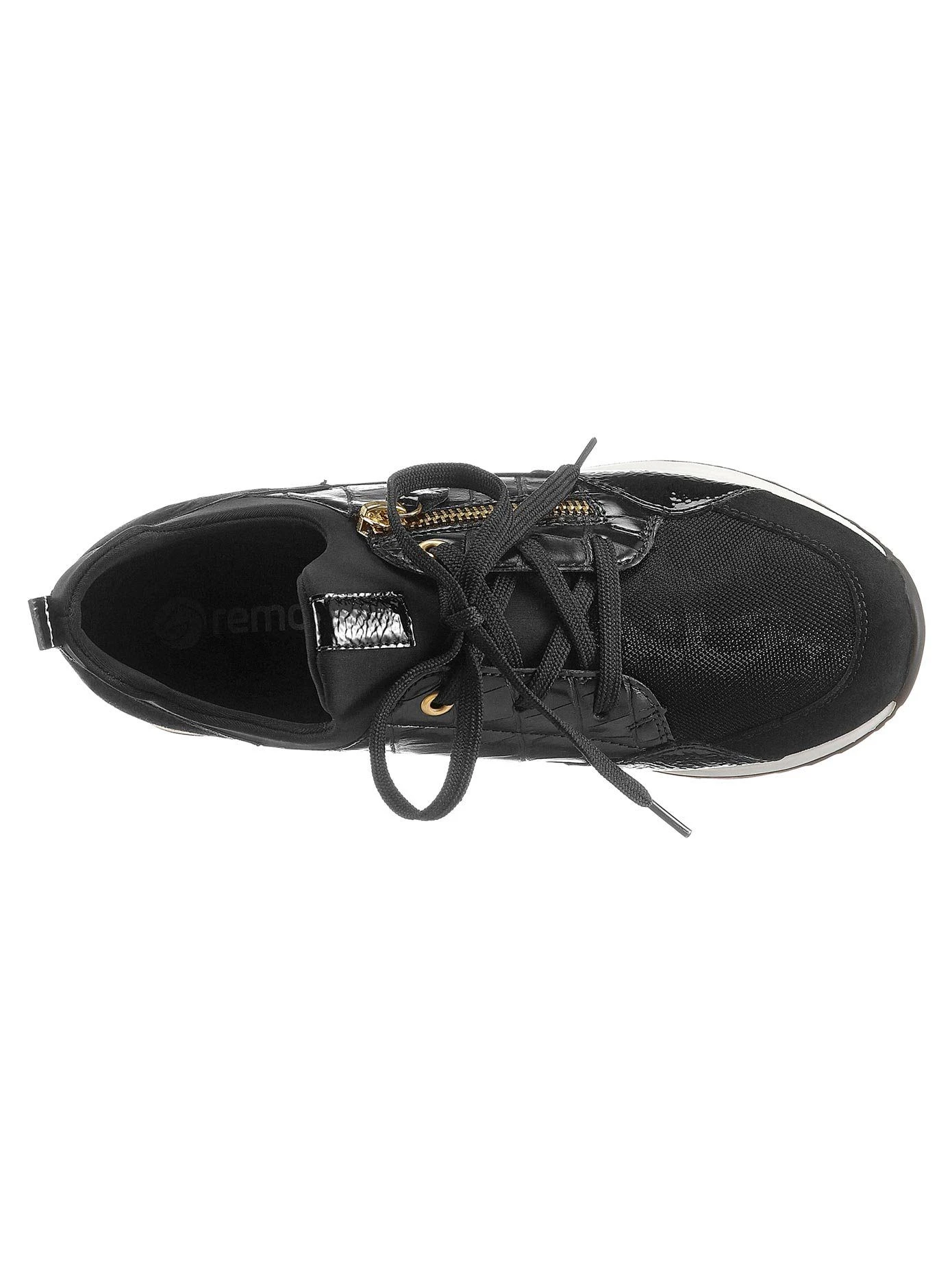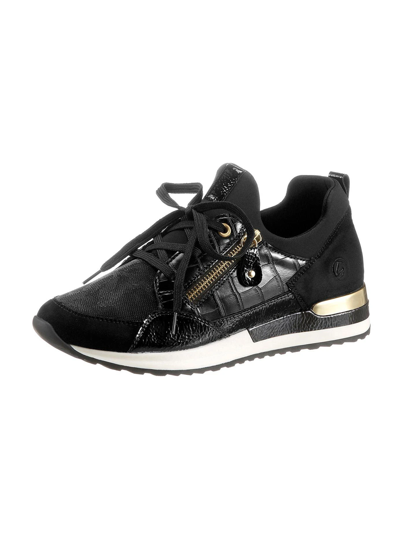 Aktuelle Optik! Sneaker von Remonte aus Leder und Leder-Imitat. Dekorative Schnürung und Reißverschluss an der Seite. Elastischer Textil-Einfass mit weichem Schaftrand. Atmungsaktives Innenfutter: Textil. Leder-Wechselfußbett mit Gelenkstütze und extra Polsterung an Ballen und Ferse. Trittdämpfende TR-Laufsohle mit ca. 35 mm Absatz. Weite F.