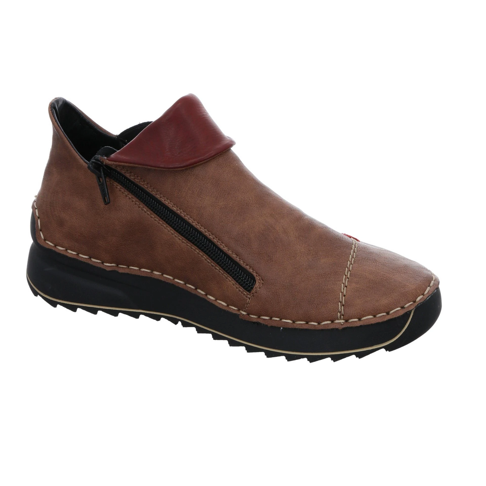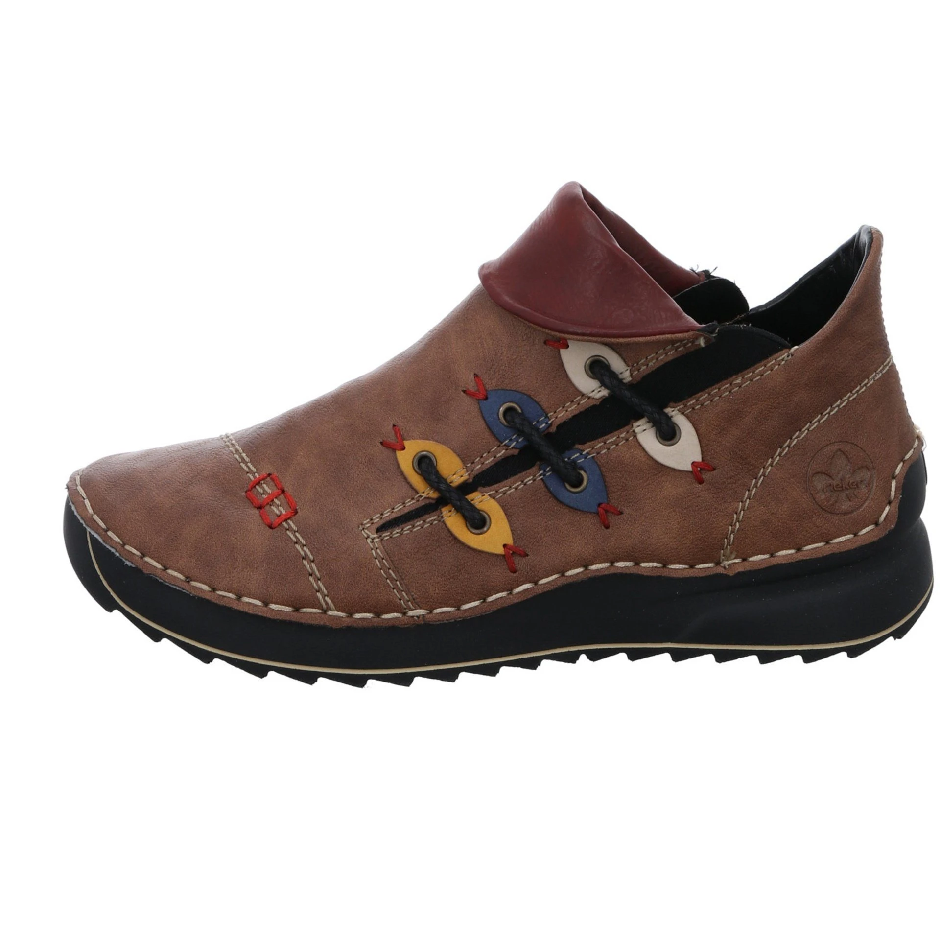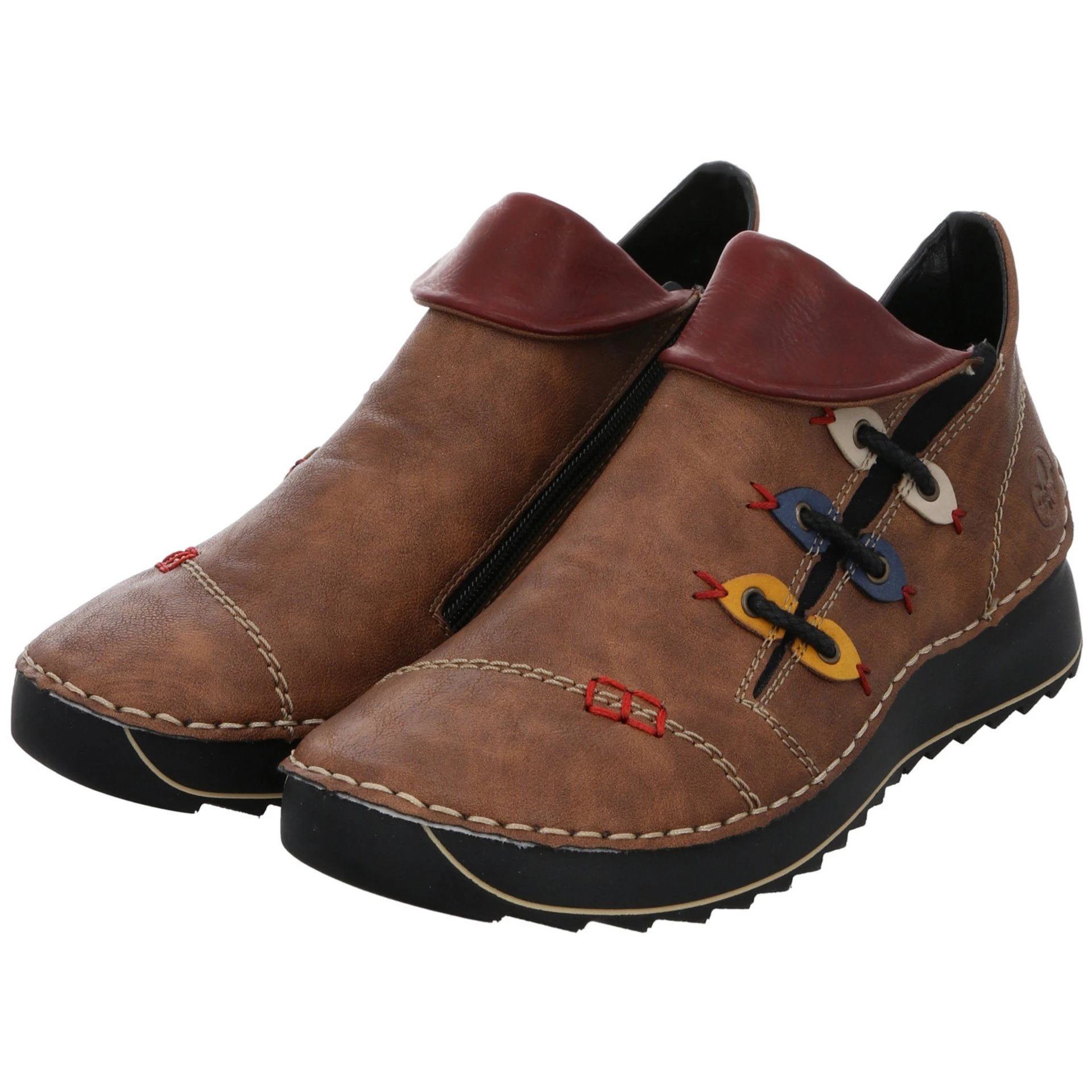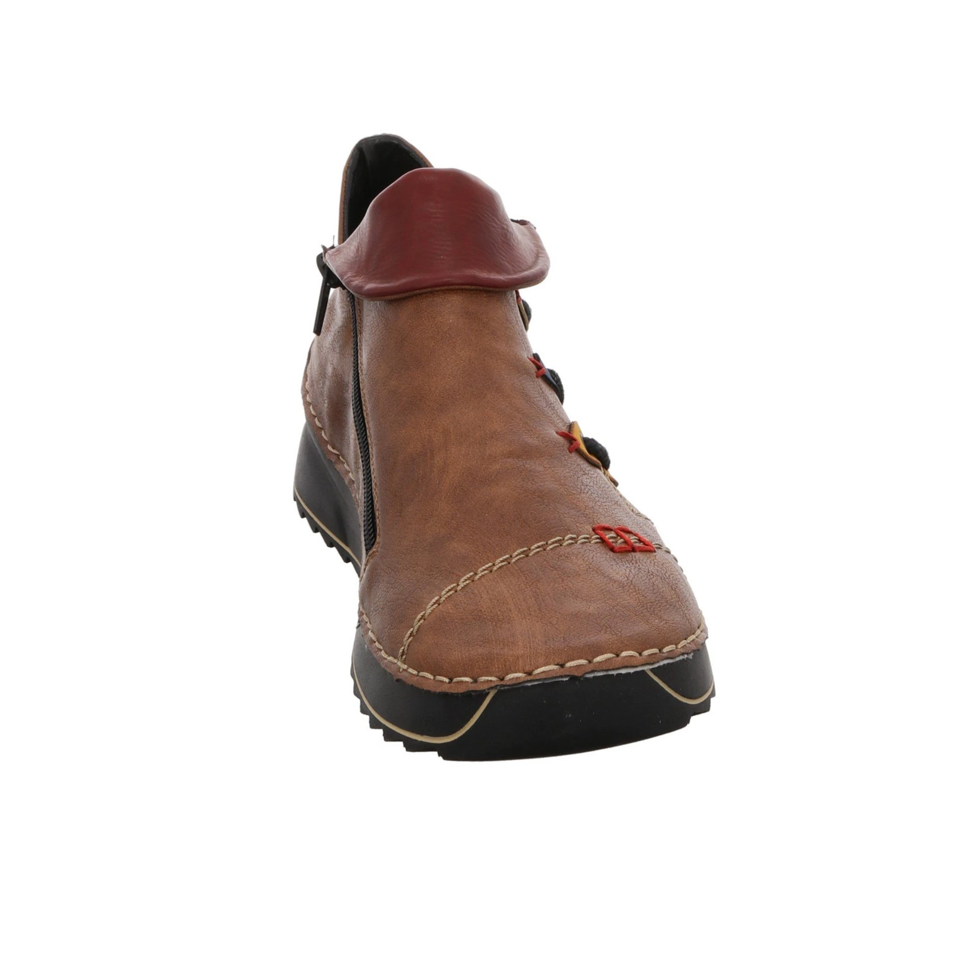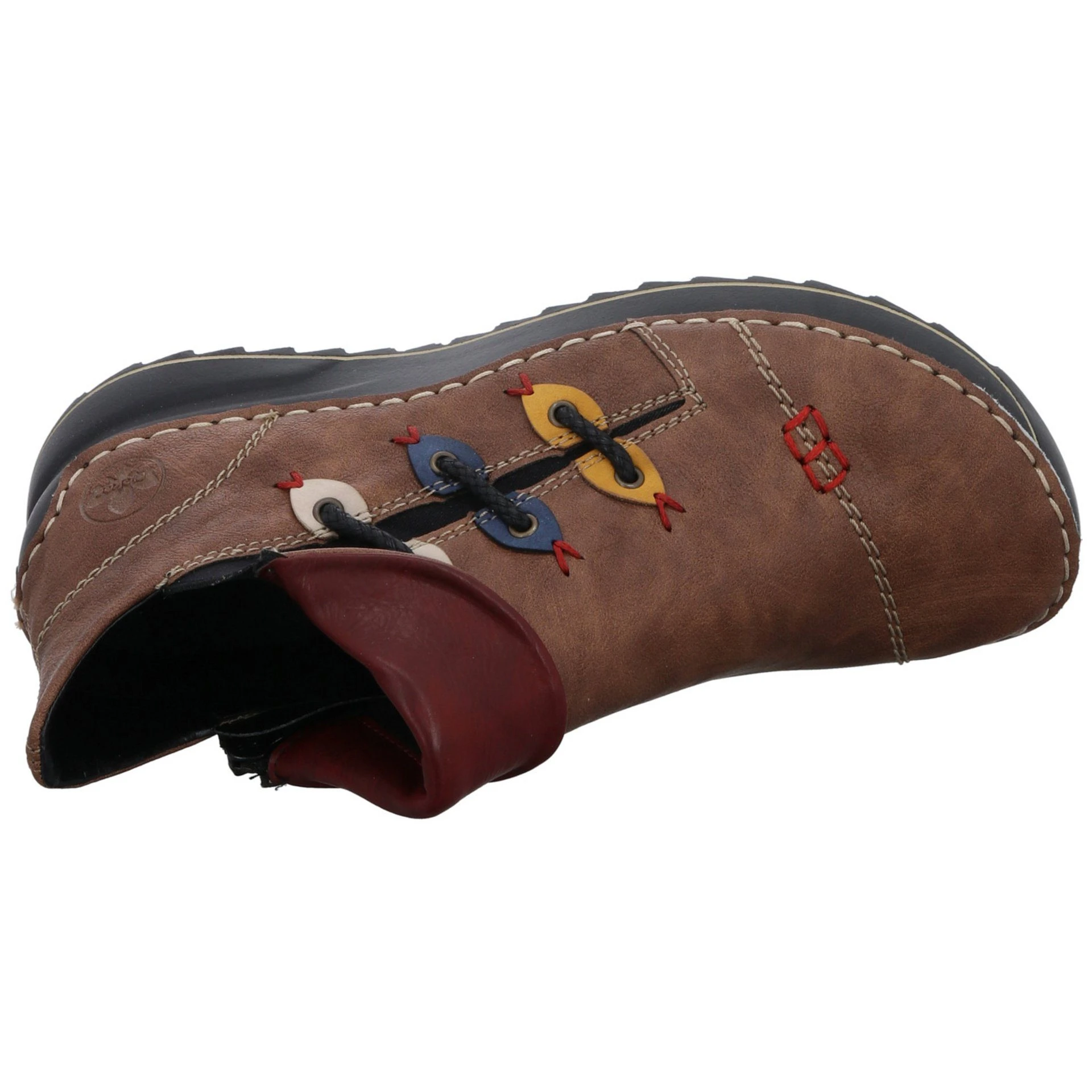 Sportlicher Boots von rieker in modischer Optik. Das grüne Synthetikobermaterial ist mit bunten Schmuckelementen kombiniert worden. Helle Ziernähte und rote Stickereien ergänzen das Design. Innen mit einem leicht wärmenden Futter ausgestattet, bleiben die Füße auch an kalten Herbsttagen schön warm.