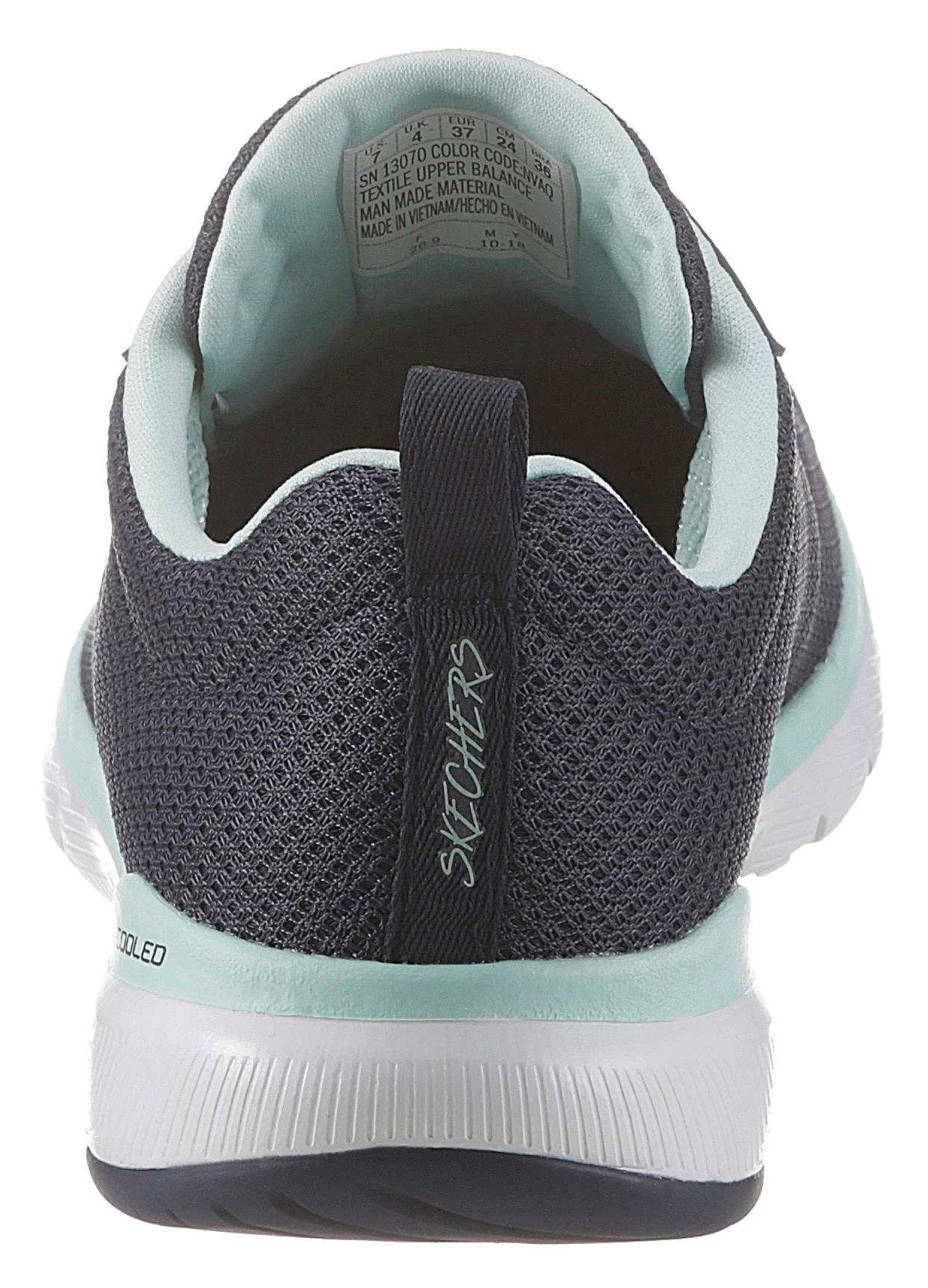 Locker und leicht bleiben die Schritte mit diesem Sneaker der Marke Skechers. Mit Textil und Lederimitat wurde für den Damenschuh ein Obermaterial gewählt, welches bequem ist und auch optisch auf ganzer Linie überzeugt. Im Inneren finden sich eine weiche Ausstattung aus Textil und eine »Air-Cooled Memory Foam« Innensohle. Komfort und Funktionalität vereint das Fußbett, denn es passt sich optimal an den Fuß an und schont dadurch die Muskulatur, Knochen, Gelenke und Bänder. Durch die regulierbare Schnürung lässt sich der Schuh optimal anpassen. Das hilft dabei, der Entstehung von Druckstellen vorzubeugen. Dank der leicht profilierten Laufsohle aus Gummi sind die modischen Allrounder vielseitig einsetzbar und meistern selbst lange Fußwege mit vollem Komfort. Ein vielseitiger Allrounder, der sich besonders gut mit einer Jeans im Used-Look und einem lässigen Printshirt kombinieren lässt. Skechers beweist mit diesem Sneaker, dass sich ein überragendes Design und hoher Komfort prima verbinden lassen.