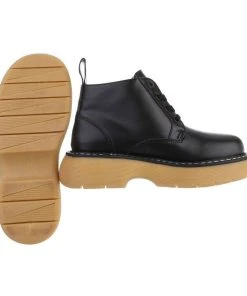 Ital-Design »Damen Schnürschuhe Freizeit« Stiefelette Flach Plateaustiefeletten In Schwarz