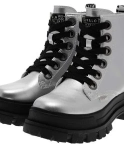 Buffalo »ASPHA LACE UP HI Silber« Stiefelette Veganer Damen Schnürstiefel